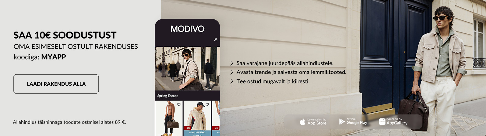 MODIVO on dünaamiline e-kaubanduse platvorm, mis revolutsioneerib moe maailma, pakkudes rohkem kui 300 000 toodet enam kui 1700 tuntud brändilt. Meeste tooteportfell sisaldab tippbrände nagu Polo Ralph Lauren, The North Face, Calvin Klein, Nike, Tommy Hilfiger, G-Star Raw, Lacoste, EA7 Emporio Armani, Boss, Reebok, Quiksilver ja Guess – ideaalne iga sündmuse jaoks.