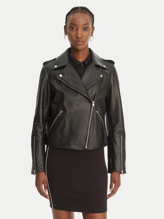 HUGO Nahkjope Lujana 50551255 Must Regular Fit