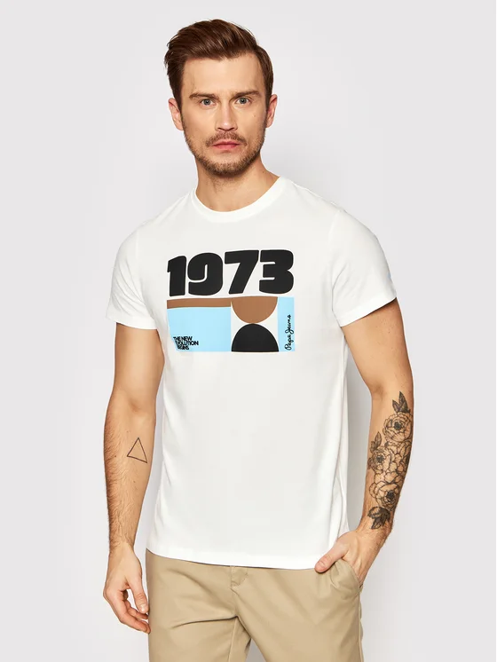 Pepe Jeans T-särk Aeson PM508231 Valge Slim Fit