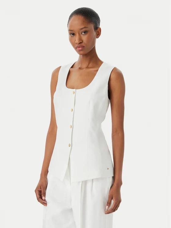 Tommy Hilfiger Top WW0WW49765 Valge Slim Fit