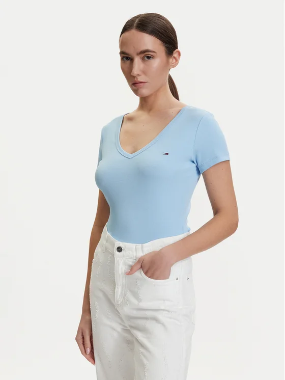 Tommy Jeans T-särk DW0DW17385 Helesinine Slim Fit