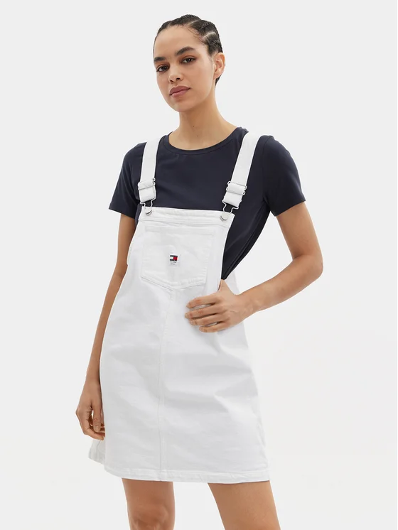 Tommy Jeans Teksakleit Pinafore DW0DW17680 Valge Regular Fit